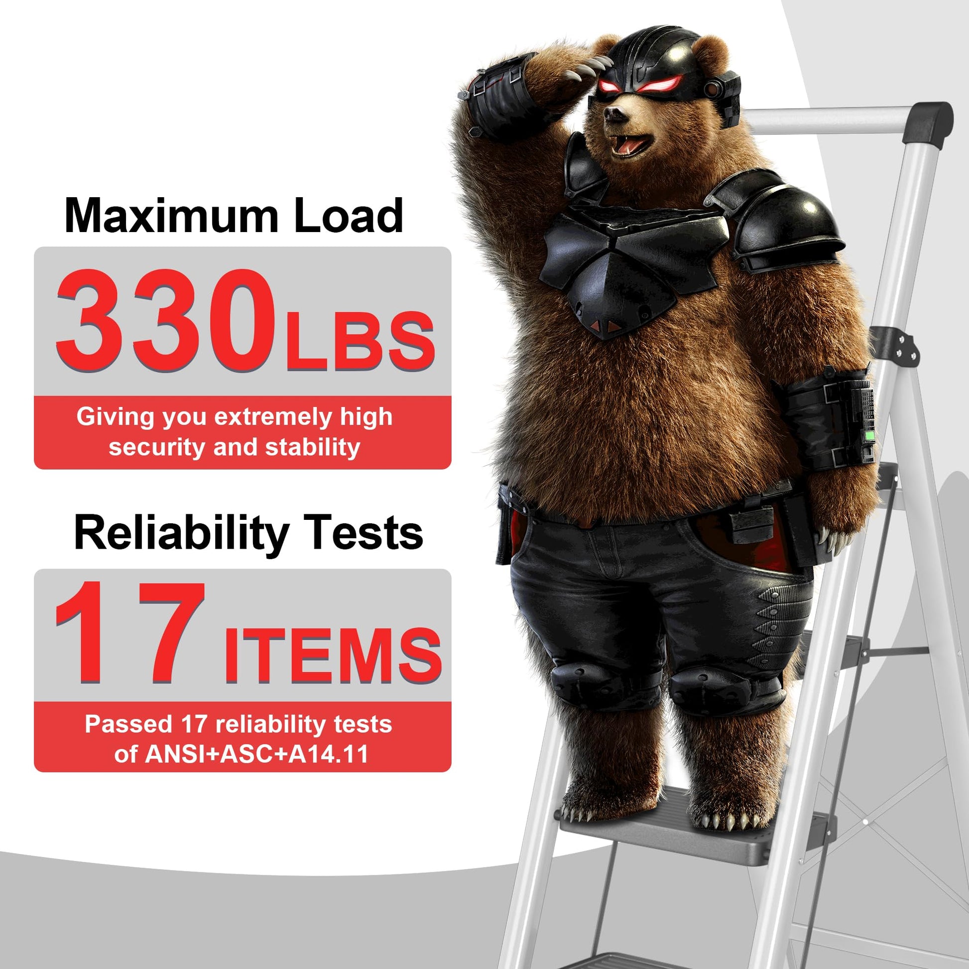 - Unmatched Strength and Durability: This step ladder boasts a robust steel structure with tubes up to 0.9mm thick, ensuring maximum durability. It has successfully passed 17 rigorous reliability tests under ANSI+ASC+A14.11 standards. This ladder offers unparalleled safety and stability for a wide range of tasks.