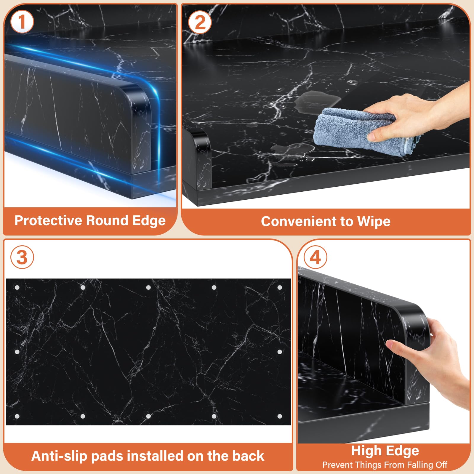 Aheaplus Washer and Dryer Countertop, Laundry Room Organization with Non-Slip Pads, Wood Shelf Topper with Round Corner Edge Rails, Folding Organizer for Laundry, 54" W x 27.5" D, Black Marble