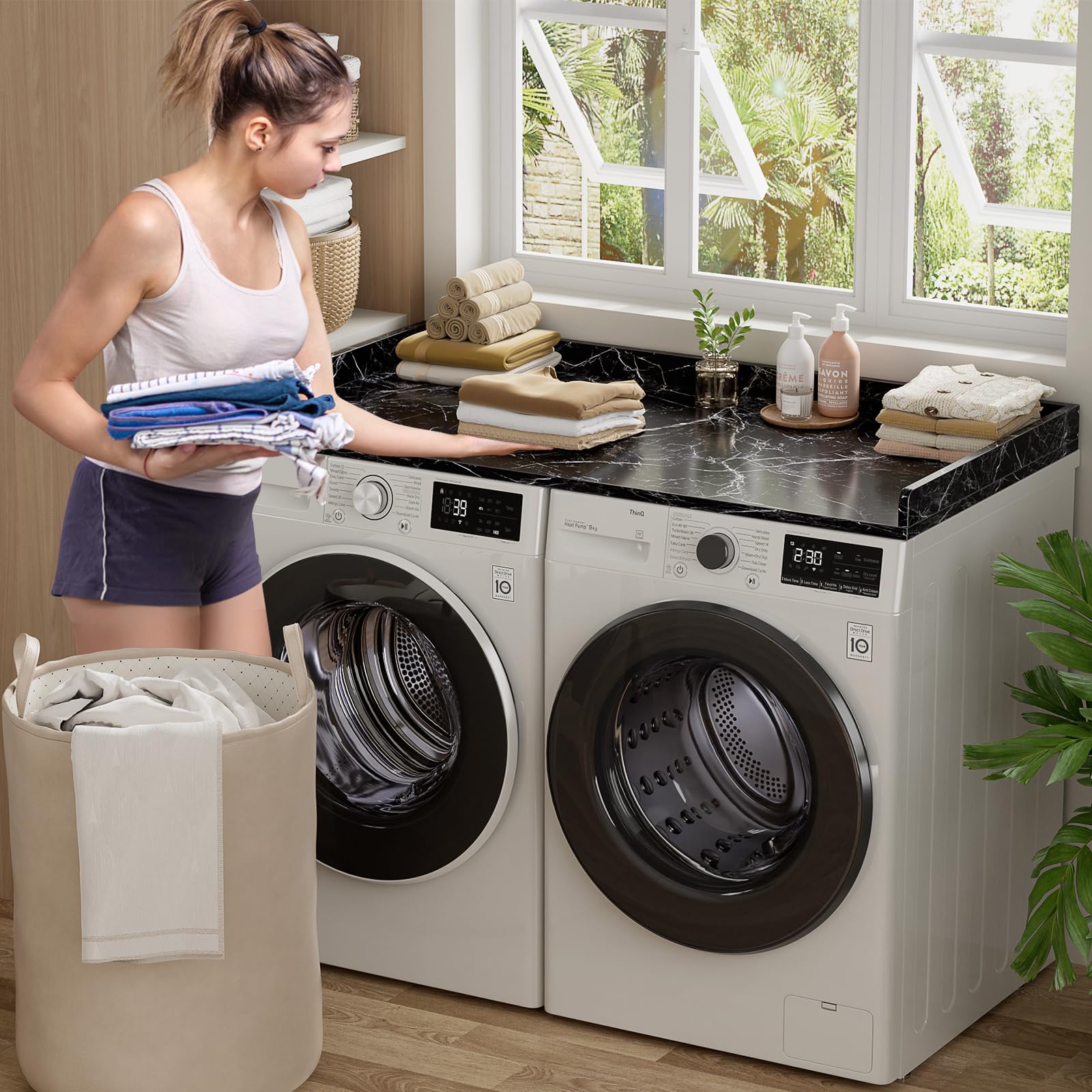 - Countertop with Spacious & Functional Design. Our washing machine countertop offers a sturdy and spacious surface perfect for all your laundry tasks. Whether you're folding clothes, organizing laundry, or sorting delicate items, this countertop prevents small objects from slipping behind the machines, ensuring a tidy and efficient laundry area. Say goodbye to the hassle of retrieving items from unreachable spaces!