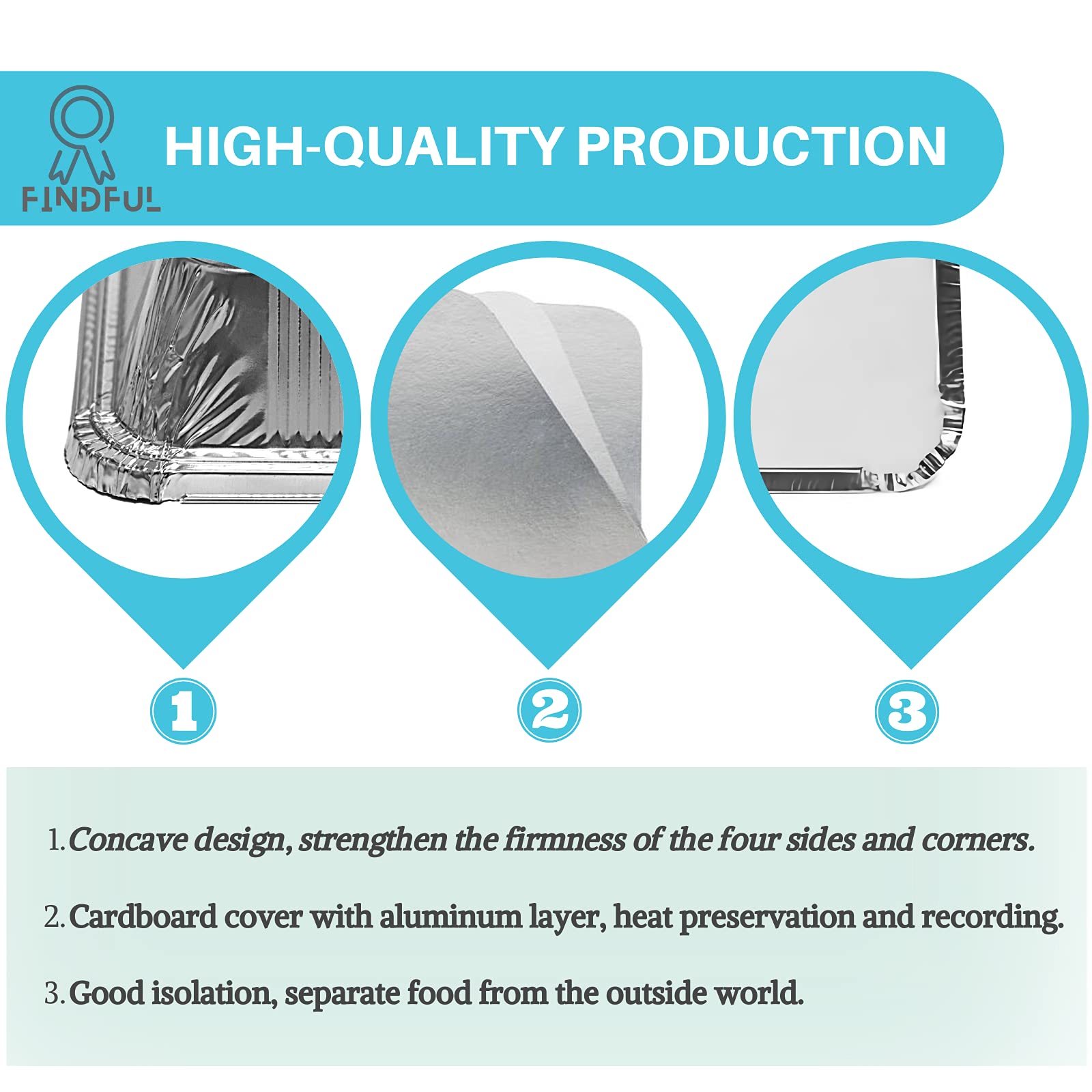 Aluminum Pans with Lids (50-Pack, 8.5"×6") 2.25 LB Capacity Foil Food Containers with Lids - 50 Pans and 50 Cardboard Covers - Disposable Tin Foil Pans - for Baking, Meal Prep and Freezer, Takeout