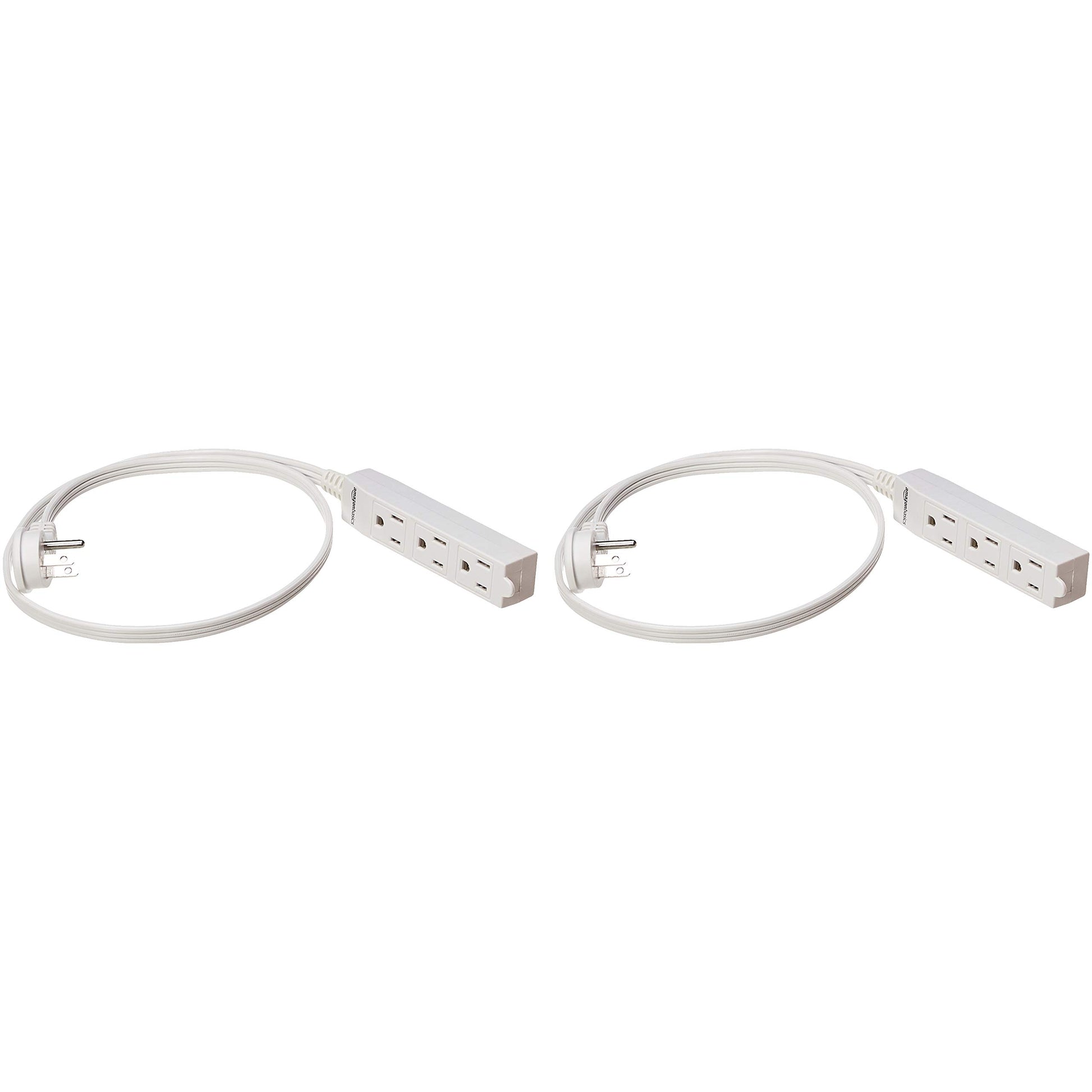 Amazon Basics 3-Prong Indoor Rectangle Extension Cord Power Strip, Flat Plug, Grounded 13 Amps, 1625 Watts, 125 VAC, 2-Pack, 3 ft, White